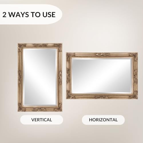 EASY TO HANG – With D-rings already affixed to the back of the mirror with other hanging & Leaning hardwares, So it is ready to hang or lean right out of the box!