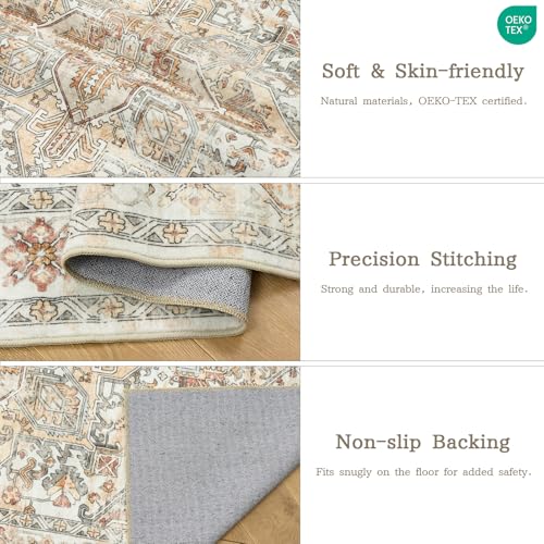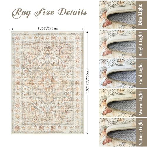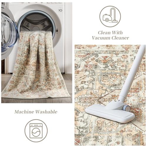 zesthome 8×10 Area Rugs – Stain Resistant Washable Rug for Living Room, Non-Slip Backing Large Area Rug with Ultra-Thin Low Pile for Bedroom, Vintage Home Decor